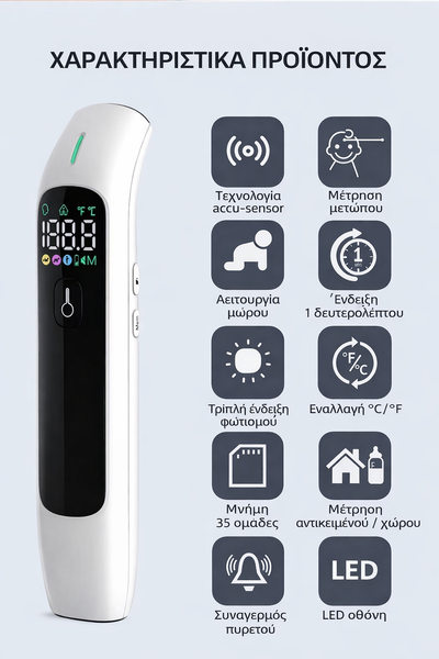 Μετρά θερμοκρασία σε μόλις 1 δευτερόλεπτο, χωρίς επαφή, με υψηλή ακρίβεια.