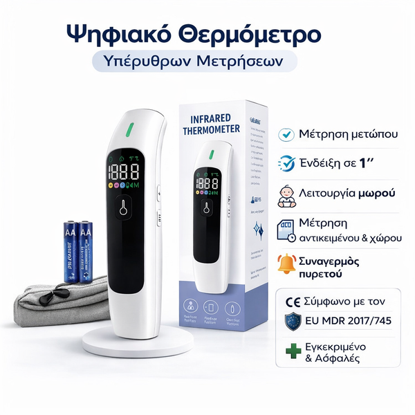 Αξιόπιστο ψηφιακό υπέρυθρο θερμόμετρο για μωρά, παιδιά και ενήλικες.