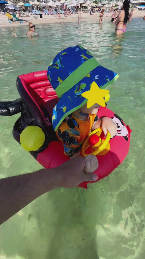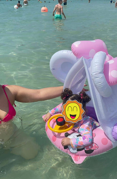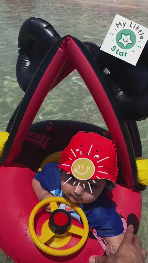 Το φουσκωτό σωσίβιο κάθισμα Mickey & Minnie με σκίαστρο είναι ιδανικό για μωρά και μικρά παιδιά από 6 μηνών έως 4 ετών, προσφέροντας στήριξη, προστασία από τον ήλιο και διασκέδαση στο νερό.