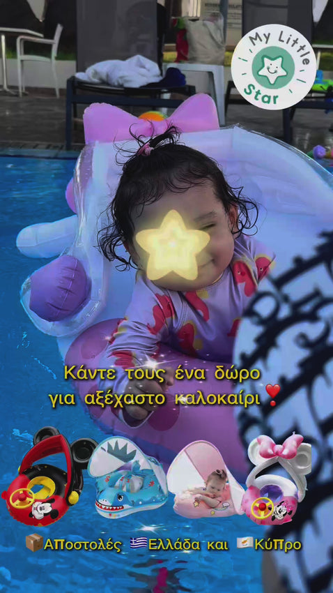 Το φουσκωτό σωσίβιο με αντηλιακό σκίαστρο από το My Little Star CY είναι ειδικά σχεδιασμένο για μωρά, ώστε να απολαμβάνουν το νερό με άνεση, σταθερότητα και σκιά.